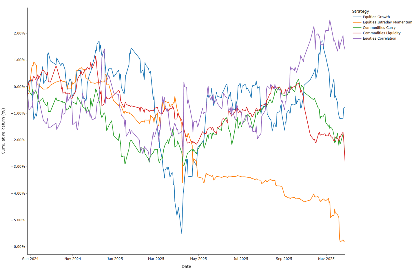In this kind of environment, a balanced mix of exposures—supported by calibrated hedges—continues to feel like the right positioning. The year-end picture may yet be shaped by a single macro catalyst, but for now, November told a quieter story: the kind of slow, under-the-surface rotation that systematic strategies tend to capture well, provided they're diversified, disciplined, and willing to stay patient.