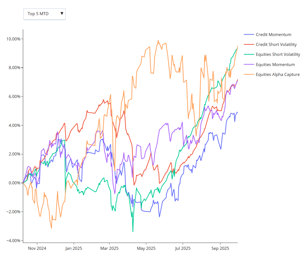 QIS strategies saw modest gains in September 2025, with strong performance in equity and credit carry and momentum, despite challenges in defensive equities and commodity strategies.
